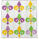 Ce rideau de douche a un design Mardi Gras de fleur de lis bordée à travers le design avec différents modèles dans eux.