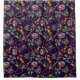 Icons of Mardi Gras on a dark purple background; masks, crawfish, beads, jester's hats, king cake and fleur de lis.