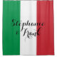 Vous pouvez customiser les couleurs vert rouge et blanc du drapeau italien pour créer votre propre rideau de douche d'anniversaire mariage. Le nom du couple est décoré dans un style calligraphie moderne et décoratif. Modifiez l'espacement des lignes pour modifier l'aspect interconnecté du script. Modifiez le style de police pour créer votre propre message texte personnalisé.