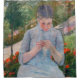 Fille à coudre dans un jardin, Femme à coudre, Jeune Fille Cousant dans un Jardin. Par Mary Cassatt en 1890-1892.