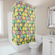 Ce rideau de douche a un design moderne du milieu du siècle de lunes de croissant divisées horizontalement en trois couleurs, rose, bleu, lavande ou de mer, coupées en deux et dispersées sur une grille avec un arrière - plan jaune. Si vous aimez le design mais que vous voulez des couleurs différentes, envoyez-moi un message.