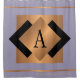 rideau de douche monogrammed exclusif de luxe tendance avec parties scintillant métallique en cuivre faux or et carrés de conception géométrique noir et lignes sur un arrière - plan lilas élégant et élégant. + Personnalisez-le avec votre nom de famille ou votre texte et un gros gras nom monogramme initial