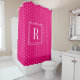 rideau de douche monogramme rose fuschia moderne chaud. L'arrière - plan de couleur rose vif est moderne et branché et les pois apportent une touche d'élégance. Joli, girly, chic et élégant, ce rideau de douche pourrait être utilisé pour une chambre principale salle de bain attenante ou la salle de bain principale. Le rideau de douche peut être personnalisé avec l'inclusion d'une initiale monogramme de votre choix.