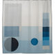 Des blocs de couleurs bleu et gris, un petit cercle bleu et un cercle plus large noir et gris se combinent pour faire un joli rideau de douche d'art moderne minimaliste.
