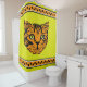 Vos enfants vont adorer prendre un bain maintenant avec cet adorable rideau de douche avec gigantesque visage de bébé tigre orange et noir de style caricature dressé contre un arrière - plan jaune-vert (puce? chartreuse?) avec les bordures haut et bas de grands pois noirs sur orange.