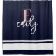 Monogramme Bandes Nautiques Marine Bleu rose blanc rideau de douche. Personnalisez cet élégant rideau de douche avec votre monogramme personnalisé initiale et nom.