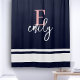 Rideaux De Douche Monogramme Bandes Nautiques Marine Rose Blanc