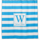 Personnalisé confectionnez votre propre rideau de douche monogrammed famille avec la couleur estivale tendance bleu cérusé et rayures modernes. Créé pour ajouter des éléments d'accent lumineux et colorés au design d'intérieur de votre salle de bain. Disponible en différentes couleurs pour s'adapter à votre décor.