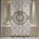 Transformez votre salle de bains en une oasis de tranquillité grâce à cet élégant rideau de douche. Le subtil motif en trellis marocain beige et mocha apporte une touche de charme exotique, tandis que l'option monogramme personnalisable crée une retraite personnalisée en spa. Fabriqué en tissu durable et résistant à l'eau, ce rideau de douche est à la fois élégant et fonctionnel.
