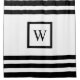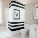 Ce rideau de douche monogramme moderne va élever le style dans votre salle de bain. Le design se compose de bandes horizontales simples en noir et blanc. Personnalisez avec votre monogramme initial.