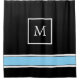 Rideaux De Douche Monogramme noir et bleu clair avec bandes