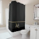 Design élégant classique de salle de bain de luxe avec noir et or avec monogramme. Le modèle a été configuré, vous n'avez donc qu'à ajouter votre nom pour compléter la conception. Accessoires correspondants en magasin.