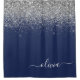 Rideaux De Douche Monogramme Nom Pailleté Bleu Navy Argenté Fille