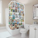 Simple 60 Photo Collage Monogramme Couleur Douche Couleur Personnalisée Rideau. Créez votre propre rideau de douche photo monogrammed couleur personnalisée en utilisant ce modèle de collage photo facile à télécharger avec 60 photos carrés dans votre choix de style de police et de couleurs (montré avec monogramme gris et bordure contre un arrière - plan blanc modifiable). Remplir avec des photos de famille, d'animaux de compagnie et de vacances, vos photos préférées ou des images de vos oeuvres d'art.