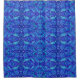 rideau de douche avec motif lunette à arabesques blanches, poissons stylisés, vagues, filets et courbes, bohème / ethnique / hippie / style vintage, texture pastel dessinée à la main. Palette de couleurs : Bleu, Azur, Turquoise, Violet, Violet. © Julia Khoroshikh, 2022 #bohemian #oriental #ethnicpattern #arabesque #bohemianpattern #bathroomDécor #salle de bain #zazzlemade www.juliakhoroshikh.art