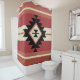 Aztec ethnic bohemian pattern with geometrical shapes in red, orange, grey and black colors on striped background