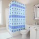 Simple et joli rideau de douche avec mon design de petites fleurs bleues avec rayures bleu foncé et bleu clair.