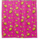 Rideau de douche avec hamburgers volants sur arrière - plan rose