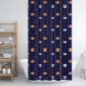 Ce beau rideau de douche d'Halloween est orné de citrouilles drôles, de fantômes, de chauves-souris et d'yeux effrayants sur un fond bleu foncé avec une légère brillance.