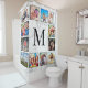 Créez votre propre rideau de douche de collage photo personnalisé 12 avec vos images personnalisées et monogramme sur un élégant arrière - plan en marbre blanc.