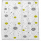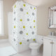 Rideau en douche moderne de la moitié du siècle dans le motif de starburst utilisant des couleurs de jaune et de gris de moutarde. Le motif de starburst était largement populaire pendant l'ère de la moitié du siècle et a été souvent vu dans l'art, les horloges et les divers articles de ménage.
