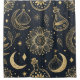 A mesmerizing celestial witchcraft seamless pattern shower curtain showcasing intricate gold line art of potion bottles, moon phases, constellations, and magical botanicals on a deep black background. This elegant blend of nature and cosmic alchemy captures a mystical, witchy aesthetic perfect for celestial lovers, Halloween, or boho lover.