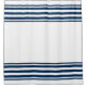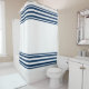 Navy blue stripes on white shower curtain. Nautical look.