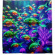Plongez dans un paradis néon avec ce design sous-marin vibrant avec différents poissons dans les tons vert et orange nager parmi les coraux colorés et les plantes de mer violets luminescents. L'arrière - plan foncé met en valeur les couleurs du néon, ce qui fait que le poisson et la vie marine se démarquent dans une scène visuellement saisissante et fantasque. Parfait pour ajouter une touche de magie aquatique et de couleur à tout espace, cette oeuvre d'art capture la beauté et la vitalité de la vie marine.
