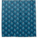 Un rideau de douche de Noël amusant et festif avec un motif de pieuvre bleue à chapeaux de Santa sur un arrière - plan bleu.