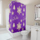Un décor de Noël coloré, avec des flocons de neige, des arbres de Noël et des tourbillons éparpillés sur un arrière - plan violet festif.