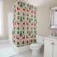 Un rideau de douche Noël rustique beige scandinave avec des arbres verts et des cerfs rouges