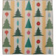 Ce rideau de douche a un design moderne du milieu du siècle des arbres de Noël et des ornements accrochés sur une guirlande avec un arrière - plan or et argent.