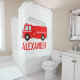 Votre enfant aime-t-il les pompiers ? Le rideau de douche Fire Truck Name conçu par Enchantfancy Design Company est parfait pour le futur pompier ou pompier dans votre vie. Cette conception comprend un camion feu rouge vif avec une échelle. Personnalisez avec votre choix de nom dans un texte rouge vif.