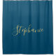 Rideaux De Douche Nom Monogram Gold Blue Classy Elegant Custom