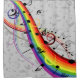Notes musicales noires flottant sur un arc-en-ciel aux couleurs arc-en-ciel tourbillonnantes. L'arrière - plan est des notes musicales grises à l'ombre plus légère.