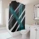 Gris rétro dans les tons gris et vert de la forêt Turquoise sur Arrière - plan noir rideau de douche personnalisée avec bandes rétro cool croisées sur une diagonale dans vert de la forêt gris turquoise et gris moyen et gris argent sur un arrière - plan noir. Vous pouvez personnaliser ce rideau de douche en changeant les couleurs ou les rayures, en les déplaçant ou en enlevant entièrement les rayures, ainsi qu'en ajoutant vos propres images et texte. Consultez la section coordination et mise en correspondance d'un décor personnalisé dans notre magasin à l'adresse zazzle.com/DIYDecor .