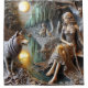 Rideaux De Douche Nuit fluviale paisible avec un Indien et un loup