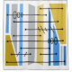 Art abstrait géométrique moderne du milieu du siècle avec des rectangles de différentes tailles et des lignes de style atomique de l'époque.