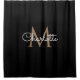 Rideau de douche chic noir et or monogrammé. Vous pouvez personnaliser le nom, le monogramme et personnaliser la police et les couleurs pour créer votre propre design unique. Conçu par Thisisnotme