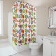 Ce rideau de douche a un design moderne du milieu du siècle des paisibles superposés les uns sur les autres dans des couleurs rétro avec une couche ayant un motif atomique.