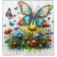 Illustration mixte d'un champ de fleurs sauvages et de papillons avec un papillon robot en charge.