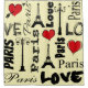 Paris design de texte pour la Saint-Valentin aux formes coeur rouge, Tour Eiffel et lampes de rue décoration arrière - plan jaune