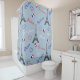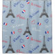 Seamless Paris text illustration with Eiffel Tower, tricolor heart shapes and French flag decoration on blue background for Valentine's Day