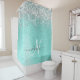 Personnalisez facilement ce rideau de douche chic branché avec une jolie parties scintillant brillante en argent sur un arrière - plan métallique brossé turquoise.