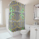 Ajoutez une ambiance de luxe à votre maison avec un rideau de douche personnalisé qui utilise l'or, l'argent et la parties scintillant. L'arrière - plan est créé par de larges bandes argentées à apparence métallique, surmontées d'un gril doré, entrelacées de feuillage vert peint à la main. Votre monogramme, au charbon de bois profond, est centré dans la partie supérieure du rideau de douche pour votre espace bain de lit. Transformez votre décor de salle de bain avec un style élégant et des couleurs luxueuses.