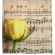 Partition et notes musicales avec une belle rose jaune posée sur le dessus. Un cadeau parfait pour le musicien dans votre vie.