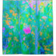 Rideaux De Douche Paysage bleu impressionniste avec fleurs roses