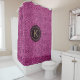 Voici un superbe imprimé de peau de léopard naturel violet de poumon pour votre rideau de douche. Il est customisé d'un monogramme sur un arrière - plan noir semi-transparent avec une fine bordure assortie. Le texte est placé dans une police dorée tendance. N'oubliez pas de remplacer l'initiale par la vôtre. Ce design apportera une touche très chic à votre salle de bain.