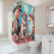 Rideaux De Douche Peinture à l'huile rétro Chiens heureux