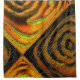 Imagem com tons amarelos e marrom submetida ao efeito 'mosaico pequeno' e alterada de forma que parte deles se cruzam e recebeu um efeito que se assemelha à sombra e outra parte da imagem foram adicionados pequenos detalque se assemelham a textura fundo semelhante a uma placa metálica amassada ou martelada.